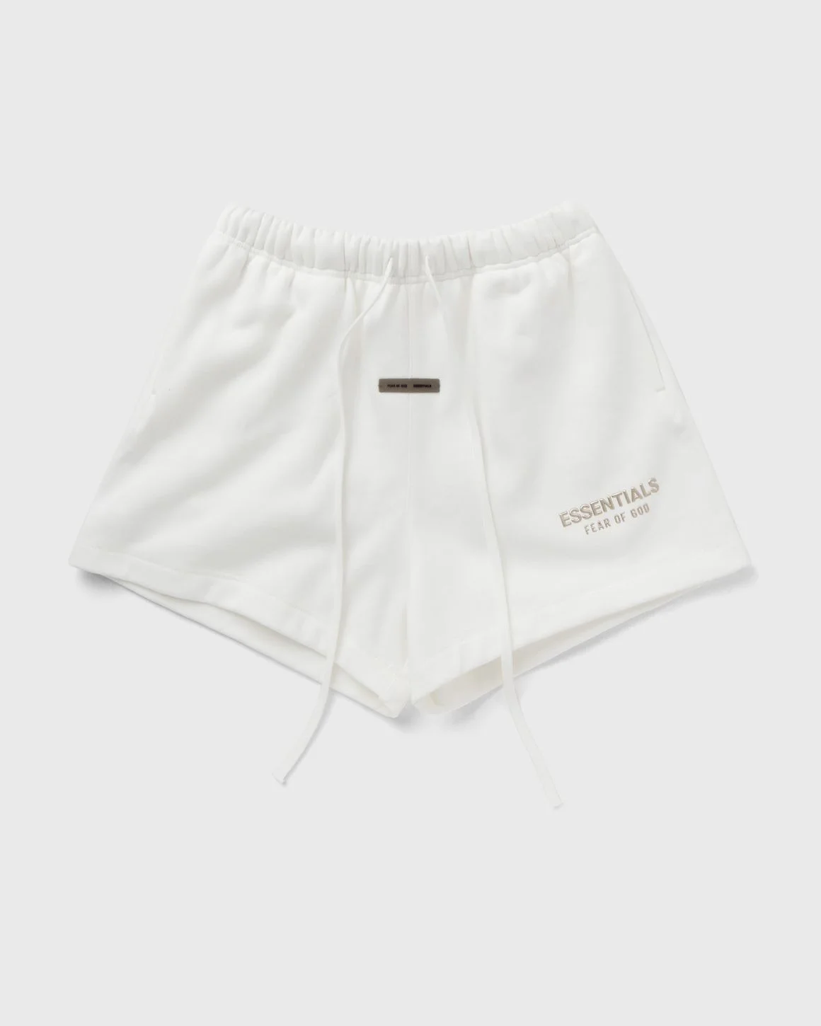 The Fear of God Womens Classic Sweatshort is made from 380 g/m² fleece and offers exceptional comfort and structure. The casual design with a mid-length leg is reminiscent of the soccer style of the 90s. A beveled metallic logo adorns the left leg. Details include side pockets and a covered elasticated waistband with a drawstring. A translucent, rubberized logo label at the center front completes the design. - Womens Soccer-Fit - loose, mid-length - Beveled metallic logo - Encased elastic waistband - Heavy drawcord with rubberized tip - Side seam pockets - Translucent, rubberized label Article Number: 160SP255714FW-323 Gender: Women Color: CLOUD WHITE Material: 80% Cotton, 20% Polyester
