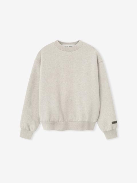The Womens Classic Crewneck is crafted from 380gsm core fleece, which offers both body and structure. The classic fit has a relaxed silhouette and cropped length. A new beveled metallic "Essentials Fear of God" logo is prominently displayed on the back. Additional details include a rib-knit crewneck, cuffs, and waist hem. A Fear of God Essentials rubberized label is stitched at the back collar and onto the sleeve. DETAILS - 80% cotton / 20% polyester fleece, 380GSM - MODEL IS 5'10" AND WEARS SIZE SMALL IN JET BLACK - Womens Essentials fit - relaxed, cropped fit - "Essentials Fear of God" beveled metallic logo - Rib-knit crewneck, cuffs, waist hem - "Fear of God Essentials" translucent rubberized label - Imported