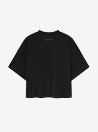The Womens Boxy Tee is crafted from a soft tri-blend jersey for an enhanced feel. It features a rib-knit crewneck and a loose fit throughout the body, along with drop shoulders for a stylish drape. Branding includes a screen-printed "Fear of God State" logo on the front and "Fear of God Essentials" translucent rubberized label at the collar. DETAILS - " - 53% cotton, 40% polyester, 7% rayon jersey knit, 200gsm - Womens Boxy fit - loose fit, drop shoulder - "Fear of God State" screen-printed logo - Rib-knit crewneck - "Fear of God Essentials" translucent rubberized label - Imported