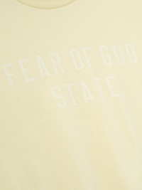 The Womens Boxy Tee is crafted from a soft tri-blend jersey for an enhanced feel. It features a rib-knit crewneck and a loose fit throughout the body, along with drop shoulders for a stylish drape. Branding includes a screen-printed "Fear of God State" logo on the front and "Fear of God Essentials" translucent rubberized label at the collar. DETAILS - " - 53% cotton, 40% polyester, 7% rayon jersey knit, 200gsm - Womens Boxy fit - loose fit, drop shoulder - "Fear of God State" screen-printed logo - Rib-knit crewneck - "Fear of God Essentials" translucent rubberized label - Imported