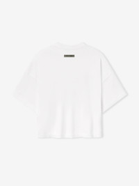 The Womens Boxy Tee is crafted from a soft tri-blend jersey for an enhanced feel. It features a rib-knit crewneck and a loose fit throughout the body, along with drop shoulders for a stylish drape. Branding includes a screen-printed "Fear of God State" logo on the front and "Fear of God Essentials" translucent rubberized label at the collar. DETAILS - " - 53% cotton, 40% polyester, 7% rayon jersey knit, 200gsm - Womens Boxy fit - loose fit, drop shoulder - "Fear of God State" screen-printed logo - Rib-knit crewneck - "Fear of God Essentials" translucent rubberized label - Imported