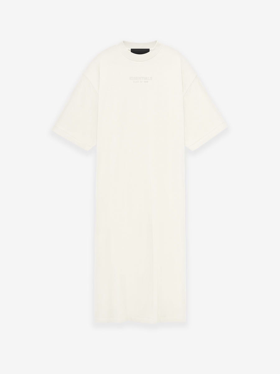 The Essentials 3/4 sleeve dress is designed with additional volume and length to provide a fashionable drape. A classic rib-knit crewneck and pockets allow casual functionality. The Essentials Fear of God logo is sized subtly in a rubberized soft-touch applique. A Fear of God rubberized label is at the back collar. Model is 5'9" and wears size Small. DETAILS - 100% cotton jersey - Essentials Fear of God soft-touch rubberized logo - Essentials rubberized label at back collar - Rib-knit collar - Imported