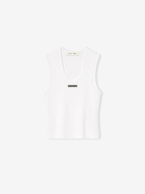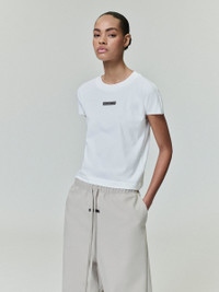 The Womens Cap Sleeve Tee is made of a tri-blend jersey for a softer feel. The piece features a rib-knit crewneck with a design that contours to the body, ending at a cropped length. Minimalist branding includes a "Fear of God Essentials" rubberized label located on the center front and at the back collar. DETAILS - 53% cotton, 40% polyester, 7% rayon jersey knit, 200gsm - Model is 5'11" and wears size Small in Cloud White - Womens -slim fit - "Fear of God Essentials" translucent rubberized label - Rib-knit crewneck - Imported