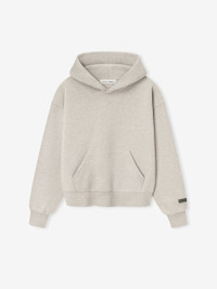 The Womens Classic Hoodie is crafted from 380gsm core fleece, which offers both body and structure to a relaxed silhouette with a cropped length. A new beveled metallic "Essentials Fear of God" logo is prominently displayed on the back. Additional details include kangaroo pocket, rib-knit cuffs and waist hem. A "Fear of God Essentials" rubberized label is stitched onto the hood and sleeve. DETAILS - 80% cotton / 20% polyester fleece, 480GSM - Model is 5'11" and wears size Small in Heather Stone - Womens Essentials fit - relaxed, cropped fit - "Essentials Fear of God" beveled metallic logo - Overlapped neckline hoodie - Rib-knit cuffs, waist hem - "Fear of God Essentials" translucent rubberized label - Imported