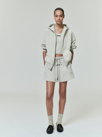 The Womens Classic Sweatshort is crafted from 380gsm core fleece, offering exceptional comfort and structure. The relaxed mid-length leg design channels a 90's soccer style. A new "Essentials Fear of God" beveled metallic logo is branded on the leg. Key features include side pockets and an encased elastic waistband with drawstrings. Additionally, there is a "Fear of God Essentials" translucent rubberized label positioned at the center front. DETAILS - 80% cotton / 20% polyester fleece, 380-gram - Model is 5'11" and wears size Medium in Heather Stone - Womens Soccer fit - relaxed, mid length - "Essentials Fear of God" beveled metallic logo - Encased elastic waistband - Heavyweight drawstring with rubberized tip - Side seam pockets - "Fear of God Essentials" translucent rubberized label - Imported