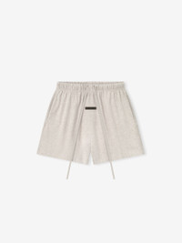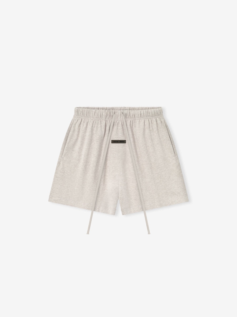 The Womens Classic Sweatshort is crafted from lightweight 100% cotton jersey. The piece is designed with a relaxed leg and mid-thigh length. Key features include side pockets and an encased elastic waistband with drawstrings. A "Fear of God Essentials" translucent rubberized label located on the center front. DETAILS - 100% cotton jersey 200-gsm - Model is 5'11" and wears size Medium in Heather Stone - Womens fit - relaxed fit - Encased elastic waistband - Heavyweight drawstring with rubberized tip - Side seam pockets - "Fear of God Essentials" translucent rubberized label - Imported
