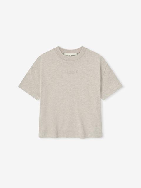 The Womens Classic Tee is made of a tri-blend jersey for a softer feel. The rib-knit crewneck tee features a relaxed fit in the body. Branding includes a "Essentials Fear of God" beveled metallic logo on the front and "Fear of God Essentials" rubberized label located at the back collar. DETAILS - 53% cotton, 40% polyester, 7% rayon jersey knit, 200gsm - Model is 5'11" and wears size Small in Homestead Heather - Womens Classic fit - relaxed body - "Essentials Fear of God" beveled metallic logo - Rib-knit crewneck - "Fear of God Essentials" translucent rubberized label - Imported