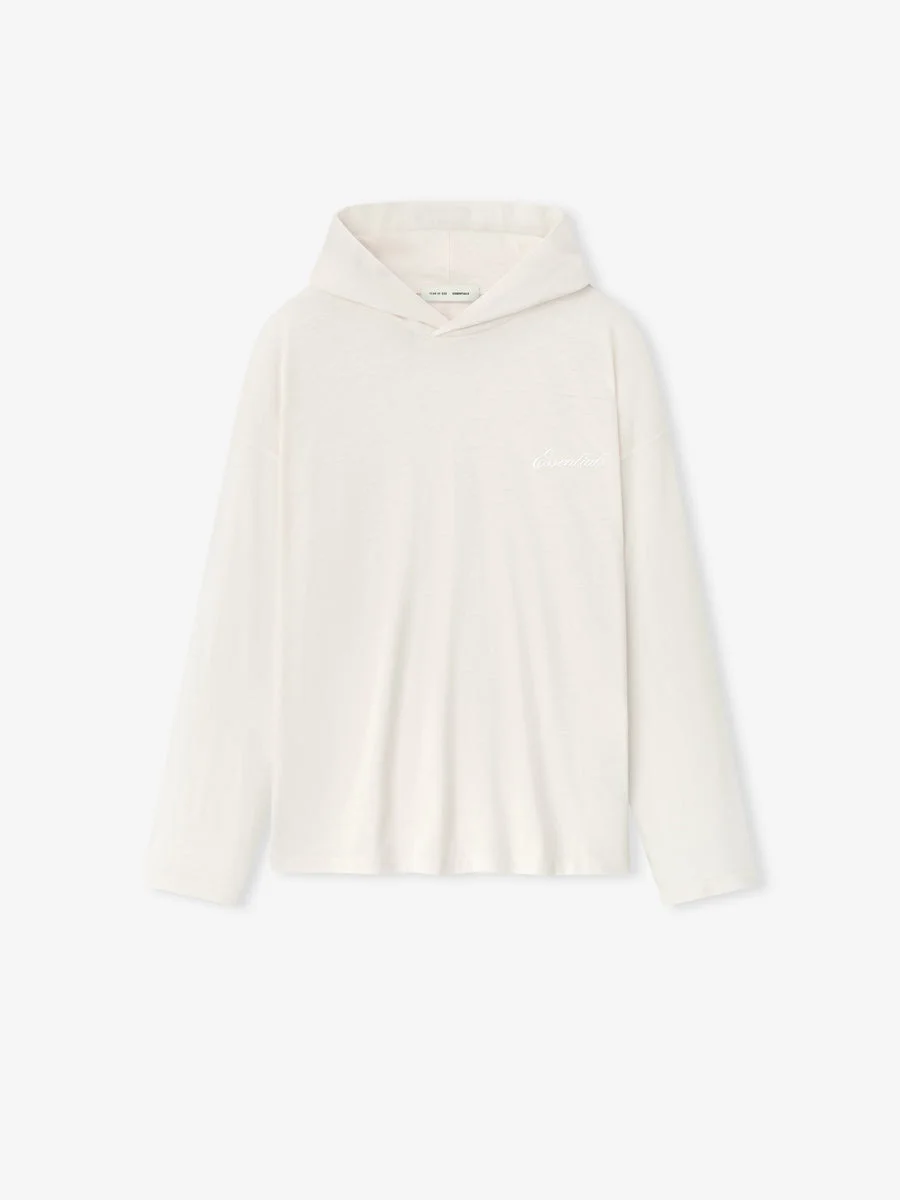 The Women’s Classic Hooded Long Sleeve Tee is crafted from lightweight core jersey for an airy, loungewear feel. Designed with a relaxed fit through the body, the tee is finished with a hood and rib-knit cuffs. Branding details include an embroidered script “Essentials” logo on the front and a Fear of God Essentials label at the back collar. DETAILS - 60% cotton, 40% polyester 125gsm - Women's Classic fit - relaxed body - Essentials embroidered logo - Hood - Rib-knit cuffs - Fear of God Essentials label