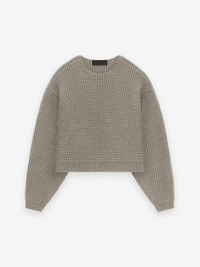 The Women's Heavy Waffle Crewneck is crafted from a heavyweight poly-nylon knit, providing warmth and rich texture. The crewneck style features a cropped, rounded fit with rib-knit cuffs, and waist hem. The Essentials Fear of God rubberized label is stitched at the back of the collar. DETAILS - 70% poly, 20% acrylic, 10% nylon waffle knit - Women's rounded, cropped fit - Crewneck - Rib-knit cuffs and waist hem - Essentials Fear of God rubberized label - Imported