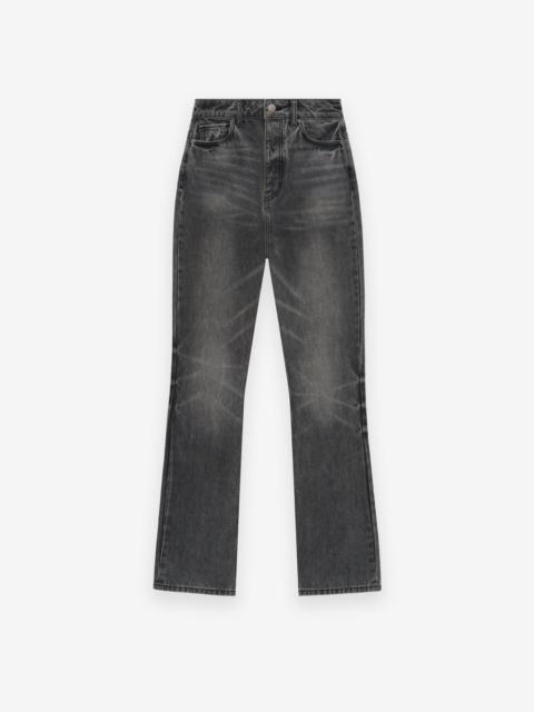 The Women's High Waisted Fitted Jean is made of 100% cotton in a vintage black wash. The high waisted style has a slim leg and is detailed with antique brass hardware, and the Essentials Fear of God black bar. DETAILS - 100% cotton denim - Women's high waisted, slim leg - 5-pocket style - Antique brass hardware - Essentials Fear of God rubberized label - Imported