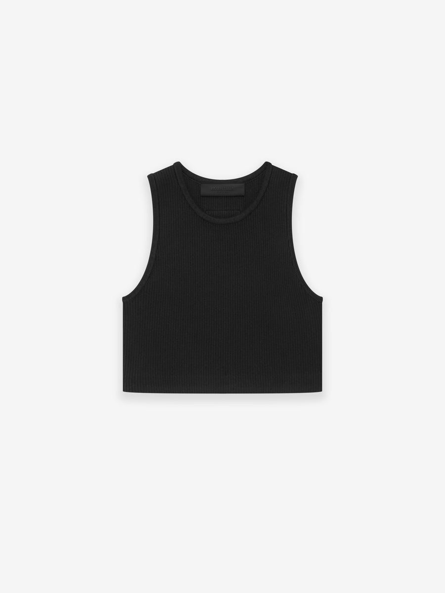 The Essentials sport tank is made in a soft cotton blend with a performance rib texture that comfortably contours around the body. The cropped tank is a versatile stand-alone or layering piece. Rib-knit neckline and armholes frame the piece. A Fear of God rubberized label is on the back. DETAILS - 43% cotton, 29% polyester, 28% nylon rib-knit - Essentials rubberized label at back collar - Imported