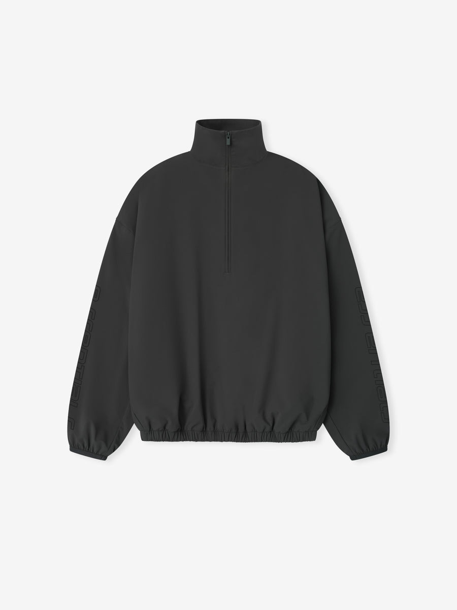 The Women's Half Zip Track Jacket is crafted from nylon-spandex offering both stretch comfort and water repellant functionality. The piece is detailed with an metallic 3M-printed “Essentials ” graphic on the sleeves to enhance its relaxed, rounded silhouette. Additional details include a high neck, half-zip front, elasticized cuffs and waist hem. A Fear of God Essentials rubberized label stitched at the back. DETAILS - 84% NYLON 16% SPANDEX - Model is 5'9'' and wears size Small - RELAXED FIT - RELAXED, ROUNDED - METALLIC 3M-PRINTED ESSENTIALS GRAPHIC - HALF ZIP FRONT - ELASTICIZED CUFFS AND WAIST HEM/li> - FEAR OF GOD ESSENTIALS LABEL - IMPORTED