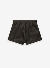 The running short is made in Taslan nylon to deliver sportswear performance with excellent durability, wind, and water resistance. The 80's inspired fit is short and boxy. Additional details include an encased elastic waistband with internal bungee drawcord and toggle, side seam pockets, and an Essentials rubberized label.