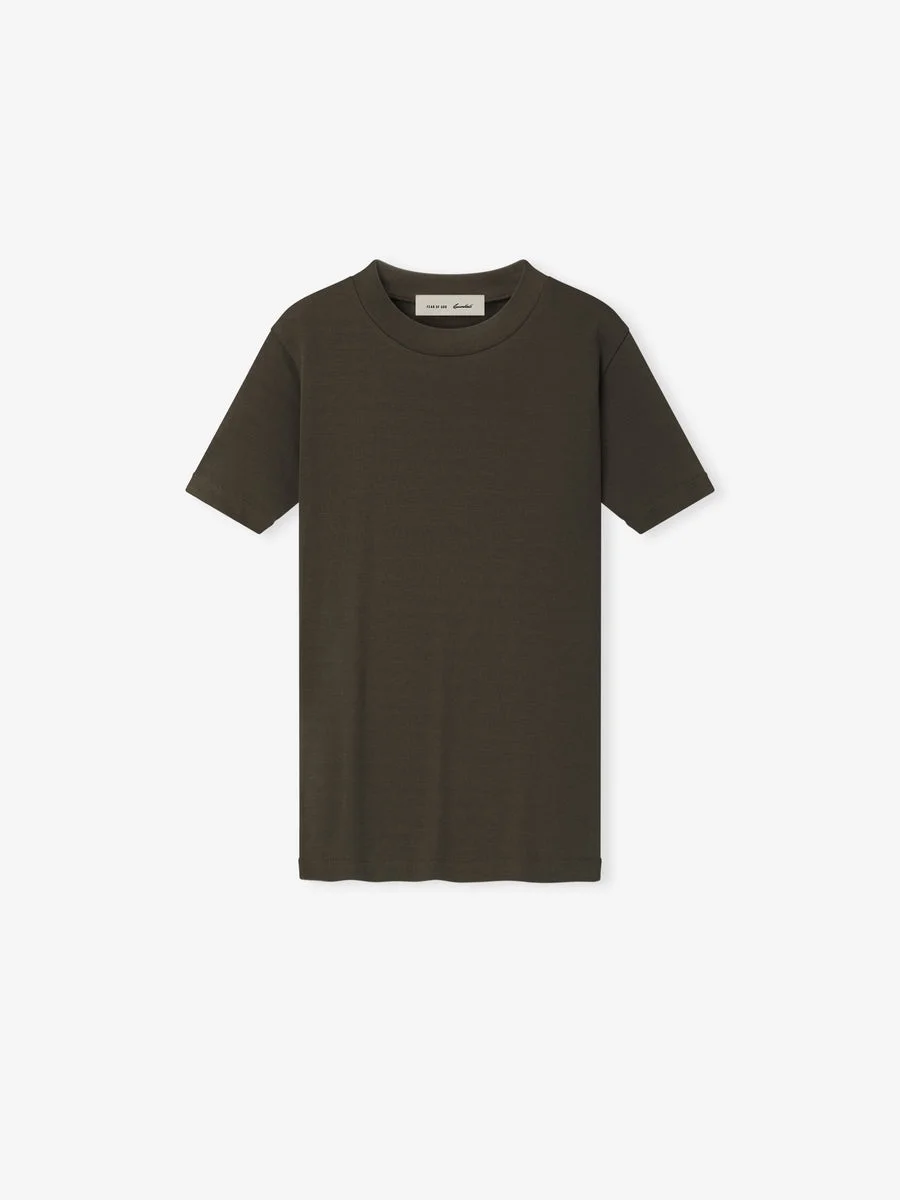 The Women’s Rib Tee is crafted from a cupro-viscose-spandex rib knit, providing stretch comfort and subtle textural dimension. Designed to hug the body, the long sleeve tee features a rib-knit neckline, long sleeves, and Essentials signature label positioned at the back.