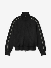 The Women's Signature Modern Track Jacket with Piping is crafted from bonded suede fleece, delivering a plush, suede-like hand feel that enhances its modern, oversized silhouette. The design is detailed with an embroidered Essentials signature logo, complemented by refined piping. Finishing touches include elastic binding at the collar, cuffs, and hem, with an Essentials signature label at the back collar completing the look.