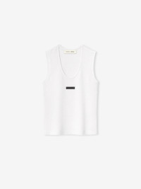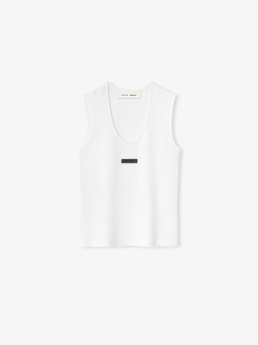 The Womens Soft Rib Knit Tank is made from a poly-nylon rib knit for stretch comfort and texture. The piece is designed to be form fitting, and cropped for stand-alone style or layering. A "Fear of God Essentials" rubberized label positioned at the center front. DETAILS - 88% polyester, 12% nylon rib knit - Model is 5'11" and wears size Small in Homestead Heather - Womens fit: form fitting, cropped length - "Fear of God Essentials" translucent rubberized label - Imported