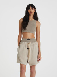 The Essentials sport tank is made in a soft cotton blend with a performance rib texture that comfortably contours around the body. The cropped tank is a versatile stand-alone or layering piece. Rib-knit neckline and armholes frame the piece. A Fear of God rubberized label is on the back. Model is 5'9" and wears size Small. DETAILS - 43% cotton, 29% polyester, 28% nylon rib-knit - Essentials rubberized label at back collar - Imported