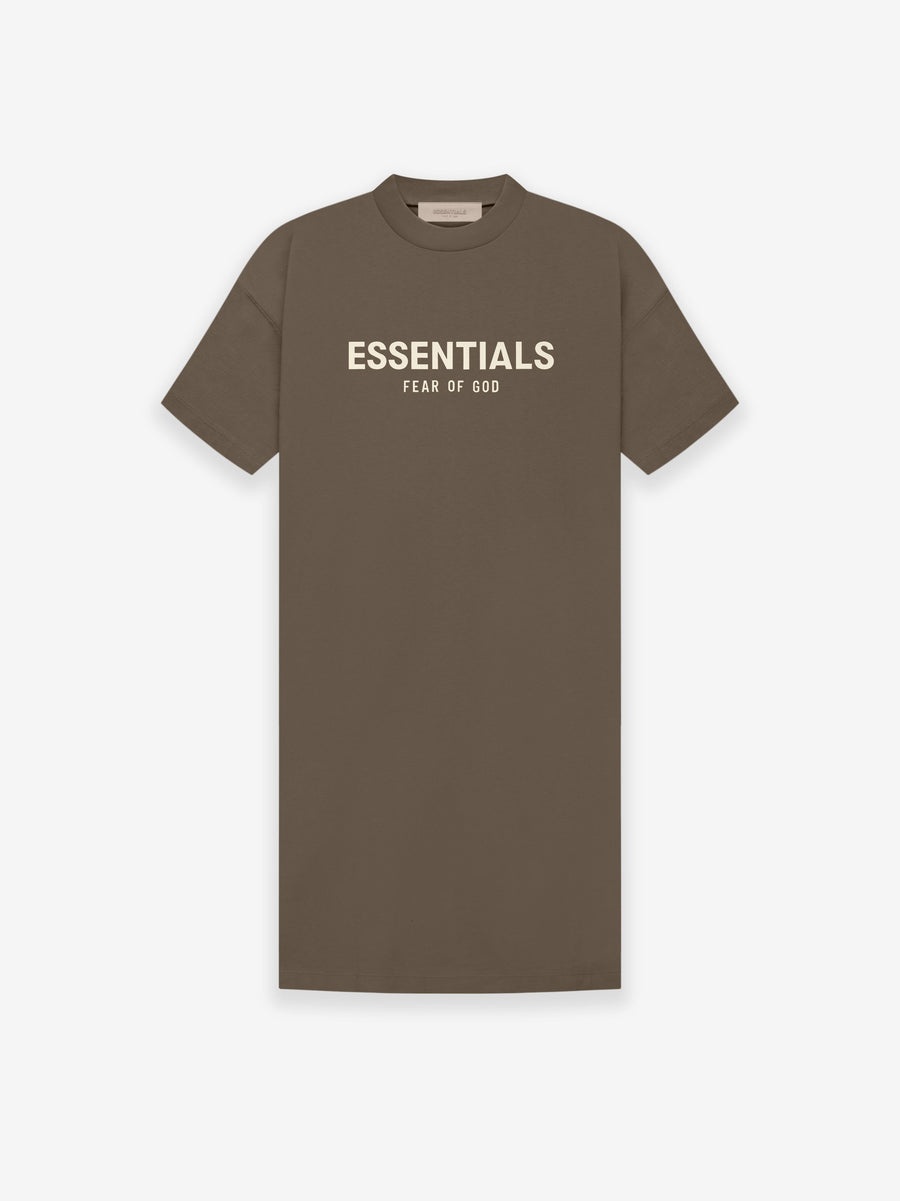 The tee dress is designed in a cotton jersey with a relaxed fit for drape and movement. The Essentials Fear of God logo in a velvet flocking is inspired by vintage sportswear. Side seam pockets on the hip provide functionality. An Essentials rubberized label is stitched at the back collar. DETAILS - Relaxed fit - 100% cotton jersey - Essentials Fear of God flocked logo on chest - Essentials rubberized label on back - Rib-knit collar - Side seam pockets - Imported - ESSENTIALS products are currently not available for purchase or shipment to Europe including Belgium, Luxembourg, and the Netherlands.