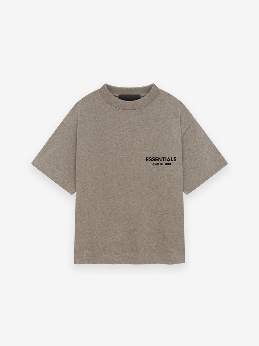 The Women's Essentials Tee is made of a tri-blend jersey for a softer feel. It features a rib-knit crewneck and a cropped, boxy silhouette. The signature "Essentials Fear of God" soft-touch logo returns on the chest and across the back, and the back collar has a stitched Essentials Fear of God rubberized label. DETAILS - 53% cotton, 40% polyester, 7% rayon jersey knit, 200gsm - Women's boxy, cropped fit - "Essentials Fear of God" soft-touch logo on chest and back - Rib-knit crewneck - Essentials Fear of God rubberized label - Imported