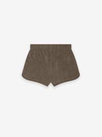 The velour short is made in a cotton/nylon blend providing a plush texture. The retro 80's fit is short with a scalloped hem. Details include an encased elastic waistband, and an Essentials rubberized label on the front. DETAILS - 70% cotton / 30% nylon velour - Essentials rubberized label on front - Scalloped hem - Encased elastic waistband - Imported - ESSENTIALS products are currently not available for purchase or shipment to Europe including Belgium, Luxembourg, and the Netherlands.