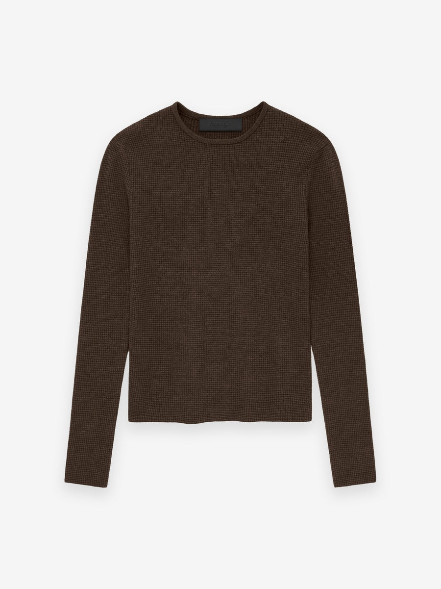 The Women's Waffle Fitted Sweater is made of a medium-weight poly-nylon knit for multi-season comfort. The rib-knit crewneck has a slim fit through the body and arms. The Essentials Fear of God rubberized label is at the back collar. DETAILS - 88% poly, 12% nylon waffle knit - Women's Essentials fit - slim fit body and arms - Rib-knit crewneck - Essentials Fear of God rubberized label - Imported