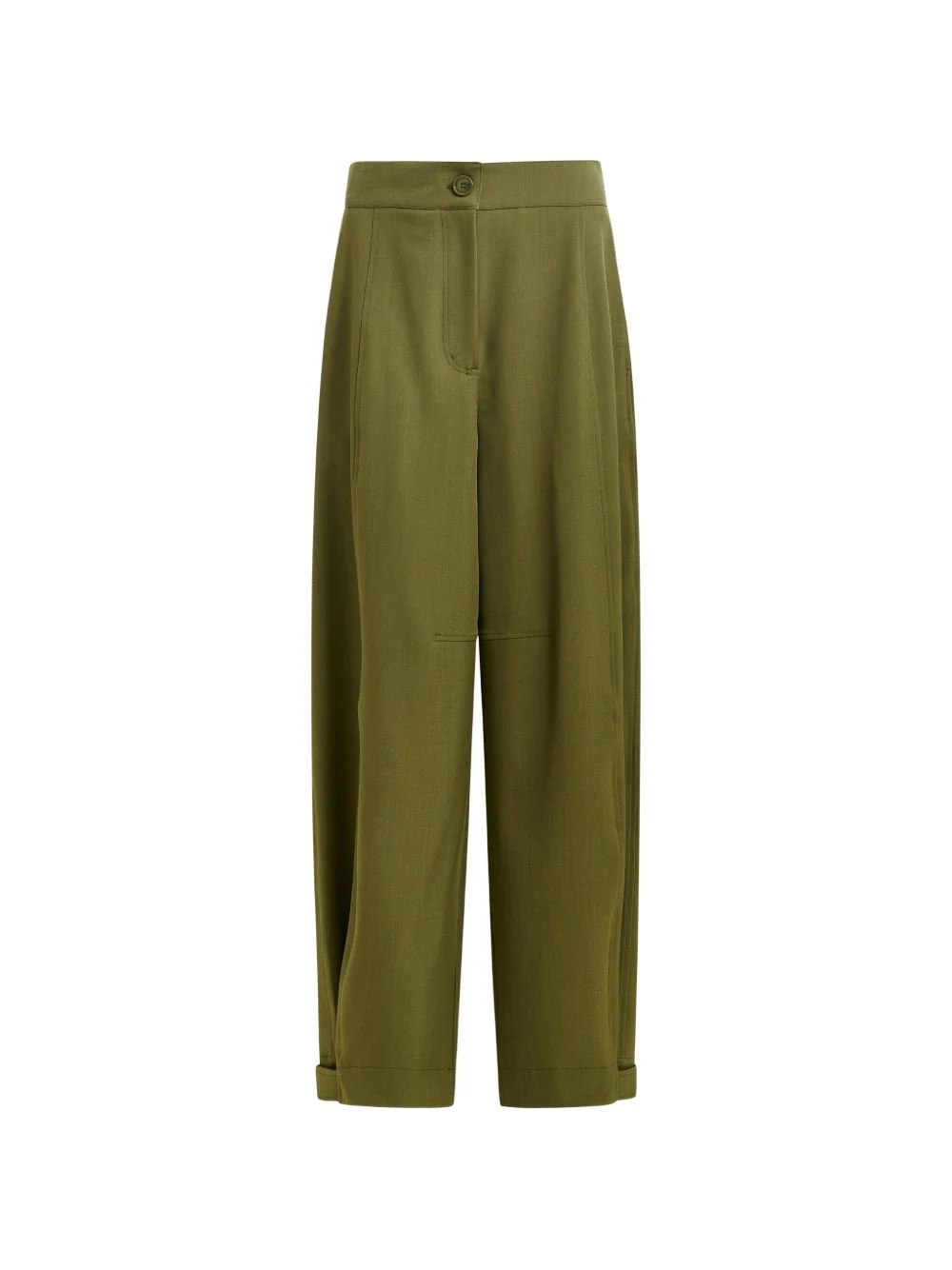 barrel-leg pleated trousers Highlights - Olive green - Zip fly - Front slit pockets - Back welt pockets - Twisted side seams - Pleated hems Imported Composition Fabric 100% Washing instructions Read Manufacturer Guidelines