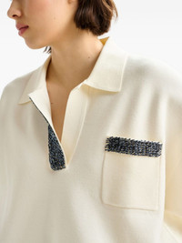 beaded-embellished polo shirt Highlights - White - Polo collar - Beaded embellishments - Chest pocket - Short sleeves - Knitted fabric Imported Composition glass 100%, Viscose 62%, Polyester 38% Washing instructions Read Manufacturer Guidelines