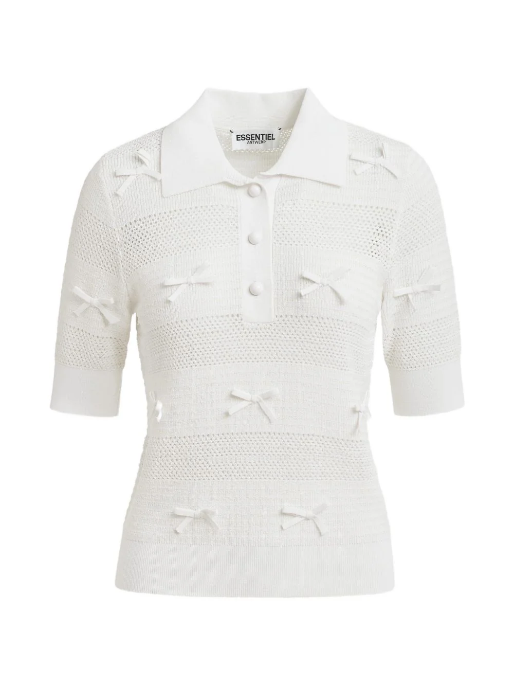 bow-embellishment polo top Highlights - Off-white - Half-button fastening - Ribbed trims - Bow embellishment Imported Composition Outer: Polyester 35%, Viscose 35%, Modacrylic 17%, Polyamide 13% Washing instructions Hand Wash