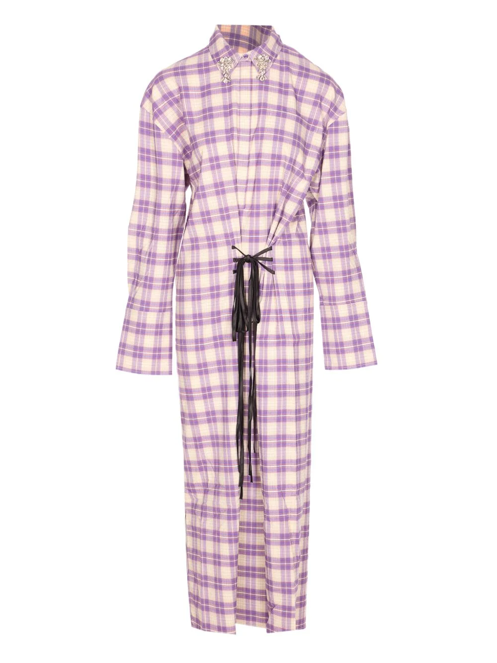 checked crystal-embellished midi dress Highlights - Purple/beige - Check pattern - Crystal embellishment - Classic collar - Long sleeves - Drawstring fastening waist Imported Composition Polyester 72%, Cotton 25%, Polyurethane 3% Washing instructions Read Manufacturer Guidelines