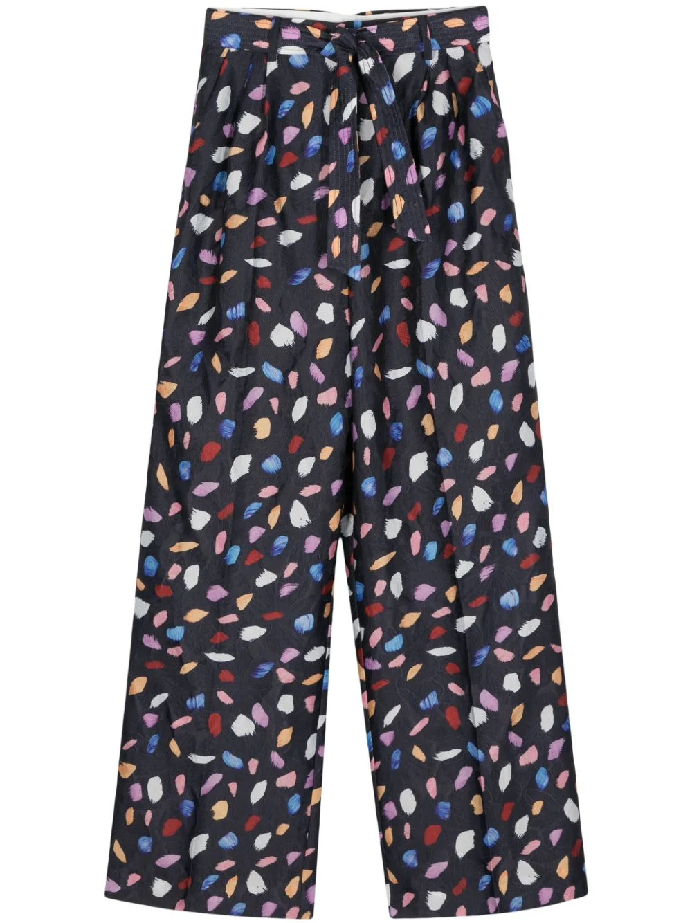 Frankrijk graphic-print palazzo pants Highlights - Midnight blue/multicolour - Recycled polyester blend - Patterned jacquard - All-over graphic print - Palazzo design - Pleat detailing - High-waisted - Concealed front button, hook and zip fastening - Detachable belt - Two side slash pockets - Rear button-fastening pocket - Wide leg Imported Composition Outer: Recycled Polyester 67%, Polyamide 21%, Polyester 12% Lining: EcoVero Viscose (LENZING) 100% Washing instructions Machine Wash