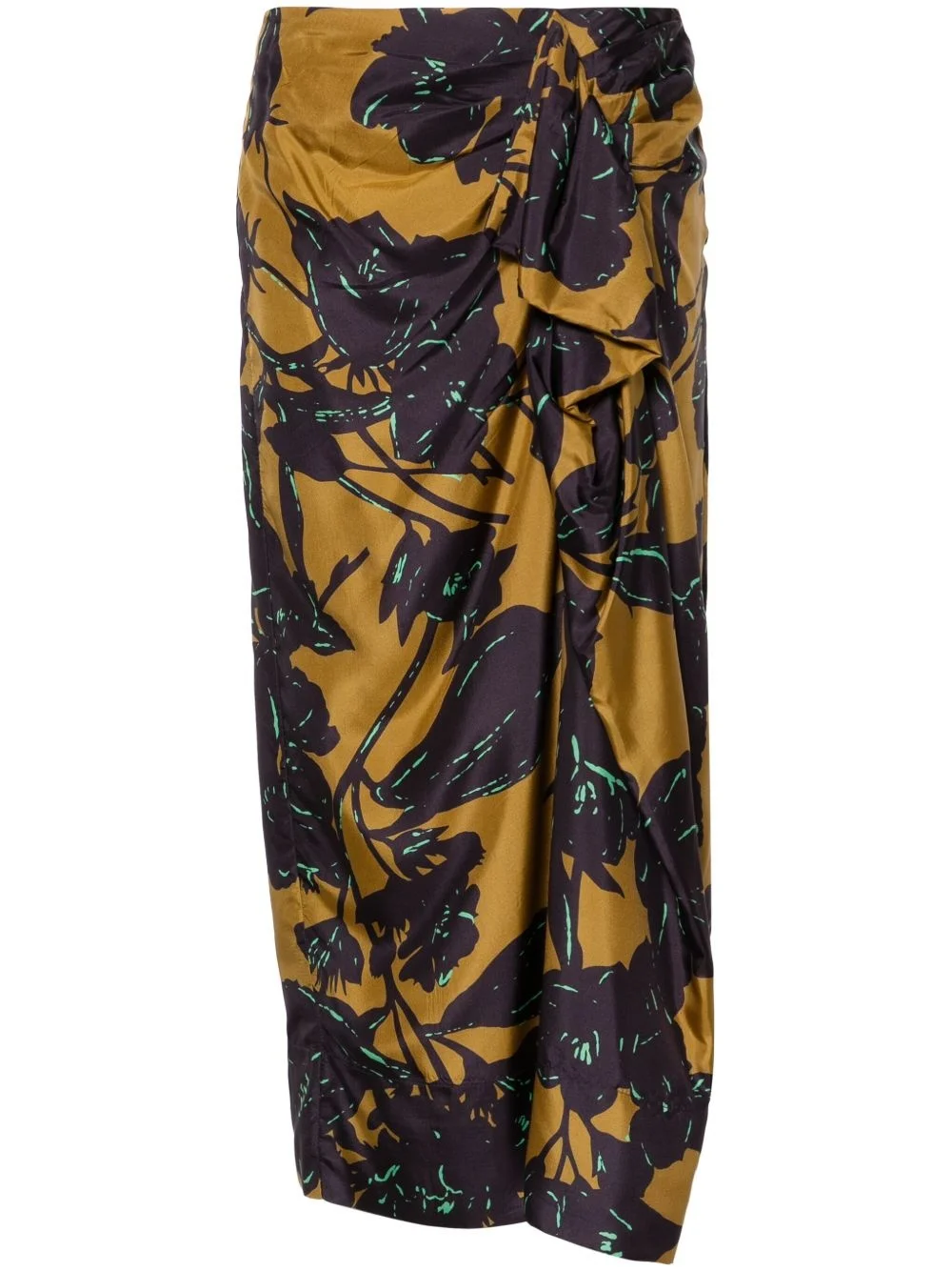 Glavia midi skirt Highlights - Camel brown/black - Silk - Satin weave - Concealed side hook and zip fastening - All-over floral print - Draped detailing - Front cascade ruffled detailing - Full lining - Straight hem - Mid-calf length Imported Composition Outer: Silk 100% Lining: Viscose 100% SIZE & FIT Model measurements Height 5 ft 9 in(1.75 m) Bust/Chest 31.88 in(81 cm) Hips 34.64 in(88 cm) Waist 24.01 in(61 cm) FittingInformation This midi-length skirt is intended to be worn high on the waist Made from a lightweight non-stretch fabric Washing instructions Machine Wash