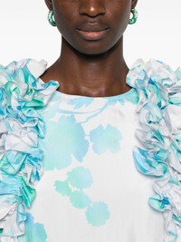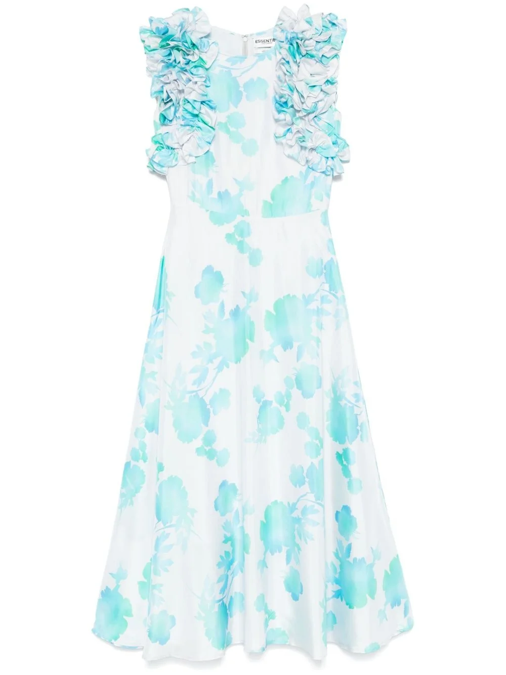 Hancun midi dress Highlights - Sky blue - Concealed rear hook and zip fastening - Full lining - Flared skirt - Ruffled detailing Imported Composition Lining: Viscose 100% Outer: Silk 100% SIZE & FIT Model measurements Height 5 ft 10 in(1.77 m) Bust/Chest 32.28 in(82 cm) Hips 35.03 in(89 cm) Waist 25.19 in(64 cm) FittingInformation Designed for a close fit at the chest and waist with a loose fit at the hip Made from a midweight non-stretch fabric Washing instructions Hand Wash