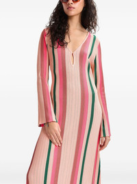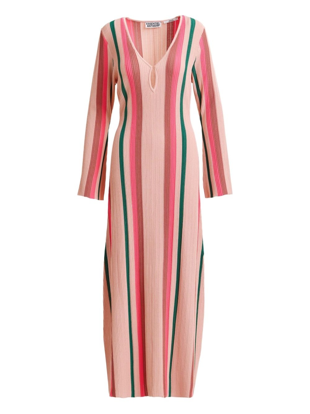 Hiscape maxi dress Highlights - Peach pink - Front button fastening - V-neck - Long sleeves - Vertical stripe pattern Imported Composition Fabric 100%