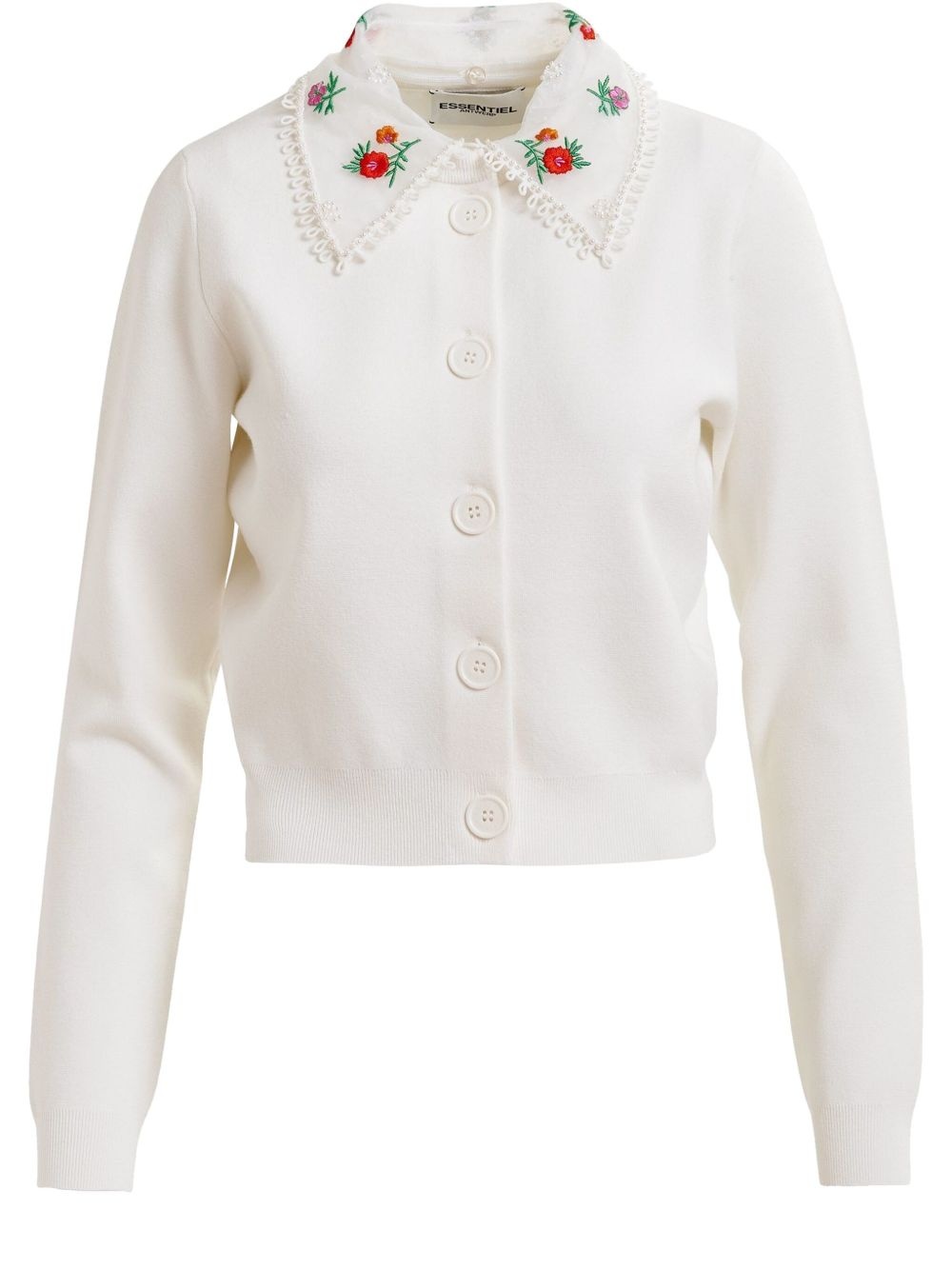 Hollandia cardigan Highlights - White - Front button fastening - Ribbed cuffs and hem - Contrasting collar - Floral embroidery Imported Composition Polyamide 100%, Viscose 62%, Polyester 38%