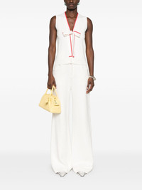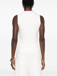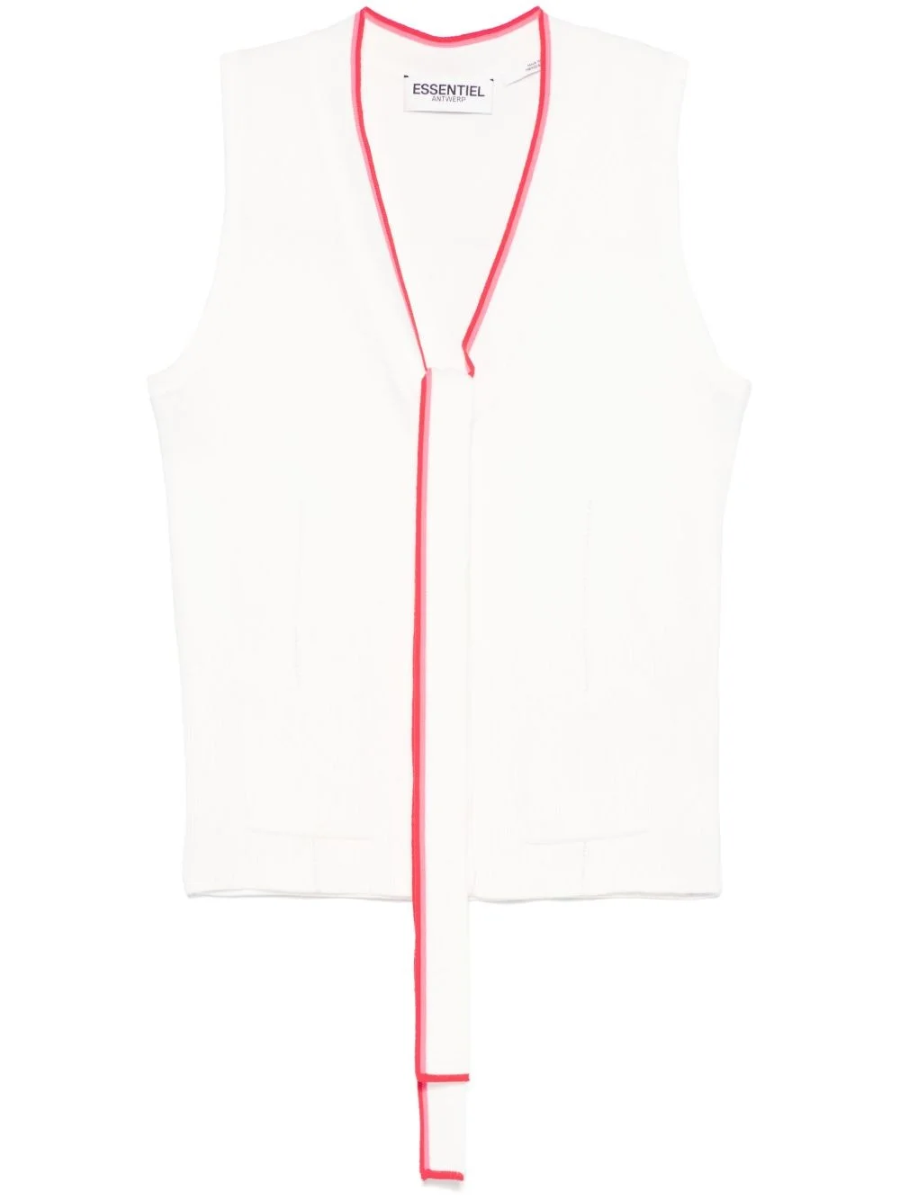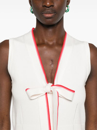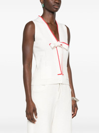 Homes top Highlights - White - Front button fastening - Front bow fastening - Two front patch pockets - Sleeveless Imported Composition Viscose 62%, Polyester 38% SIZE & FIT Model measurements Height 5 ft 10 in(1.77 m) Bust/Chest 32.28 in(82 cm) Hips 35.03 in(89 cm) Waist 25.19 in(64 cm) FittingInformation Designed for a slim fit that sits just away from the body offering a close yet comfortable fit Made with a midweight knit, this piece offers some stretch