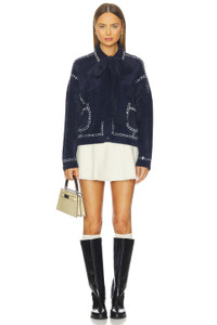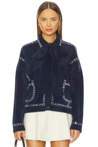 - Outer Shell: 100% Polyamide Embroidery: 100% Polyamide - Hand wash cold - Front button down closure - Front slip pockets - Contrast stitching accents - Detachable scarf included - Midweight knit fabric - Revolve Style No. ESSE-WK73 - Manufacturer Style No. Ihoops