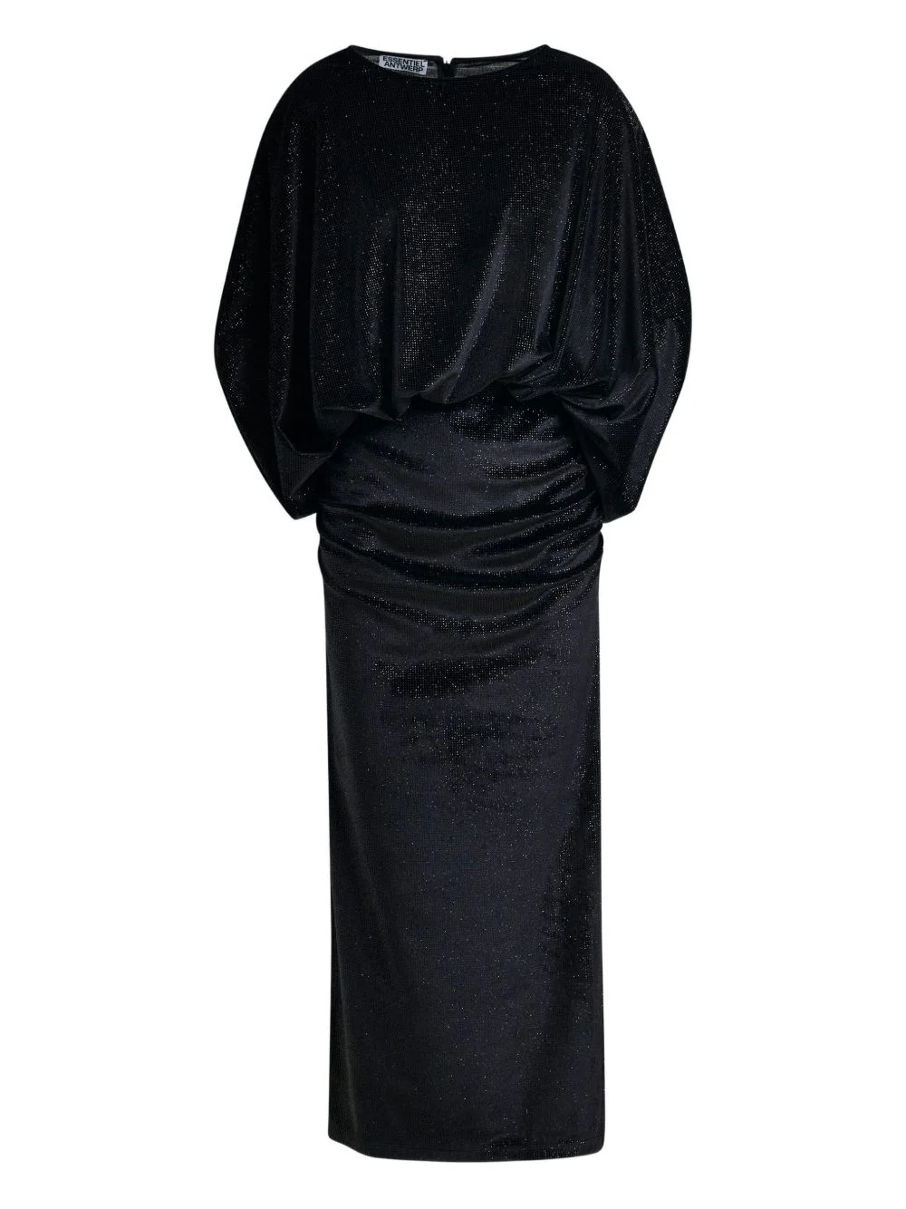 Ividence draped cape maxi dress Highlights - Black - Subtle sparkles - Elasticated waistband - Draped sleeves - Side split Imported Composition Outer: Polyester 92%, Spandex/Elastane 8% Lining: Polyester 95%, Spandex/Elastane 5% Washing instructions Hand Wash