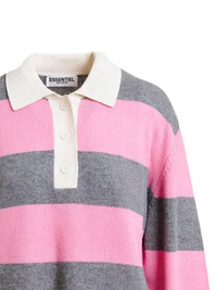 Jezebel polo top Highlights - Pink - Striped design - Button placket - Collared Imported Composition Body: Wool 46%, Viscose 25%, Polyamide 24%, Cashmere 5%