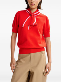 Jonda scarf-tie T-shirt Highlights - Red - Ribbed trim - Scarf-tie collar - Short sleeves Imported Composition Viscose 62%, Polyester 38% Washing instructions Machine Wash