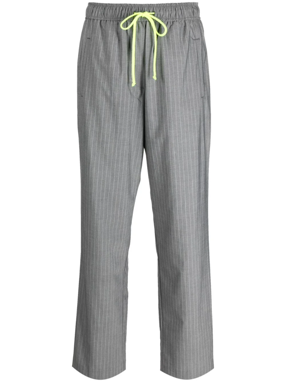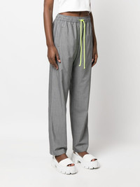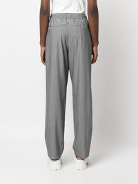 pinstripe-pattern drawstring-waist trousers Highlights - Light grey - Recycled polyester blend - Pinstripe pattern - High-waisted - Elasticated drawstring waistband - Two side welt pockets - Two rear welt pockets - Tapered leg - Straight hem Imported Composition Outer: Recycled Polyester 69%, Viscose 29%, Spandex/Elastane 2% Lining: Viscose 100% SIZE & FIT Model measurements Height 5 ft 10 in(1.77 m) Bust/Chest 29.92 in(76 cm) Hips 34.25 in(87 cm) Waist 23.62 in(60 cm) FittingInformation Designed for a tapered fit, these trousers allow for a close fit at the waist and a loose unrestricted fit over the leg with a closer fit towards the ankle Adjust this piece’s waistband to your preference using the drawstring Made from a midweight stretch fabric, this piece offers elasticity and flexibility when worn This piece fits true to size – take your usual size Washing instructions Machine Wash