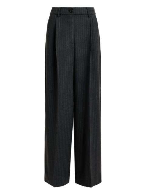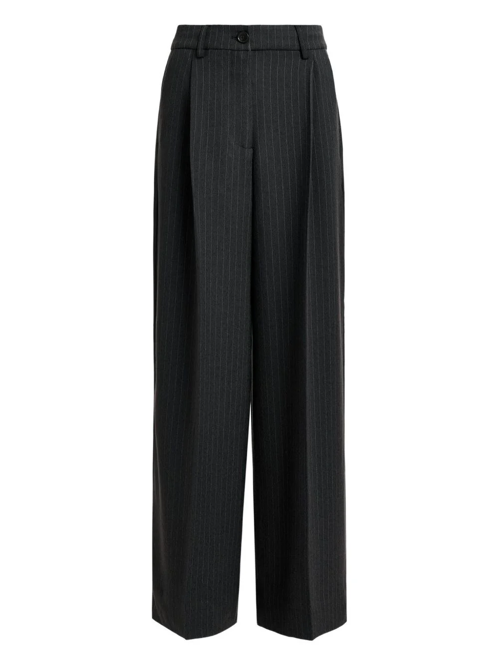 pleated pinstripe-pattern trousers Highlights - Grey - Pinstripe pattern - Pleated front - Pressed creases - Welt pockets Imported Composition Polyester 63%, Viscose 35%, Polyurethane 2% Washing instructions Read Manufacturer Guidelines