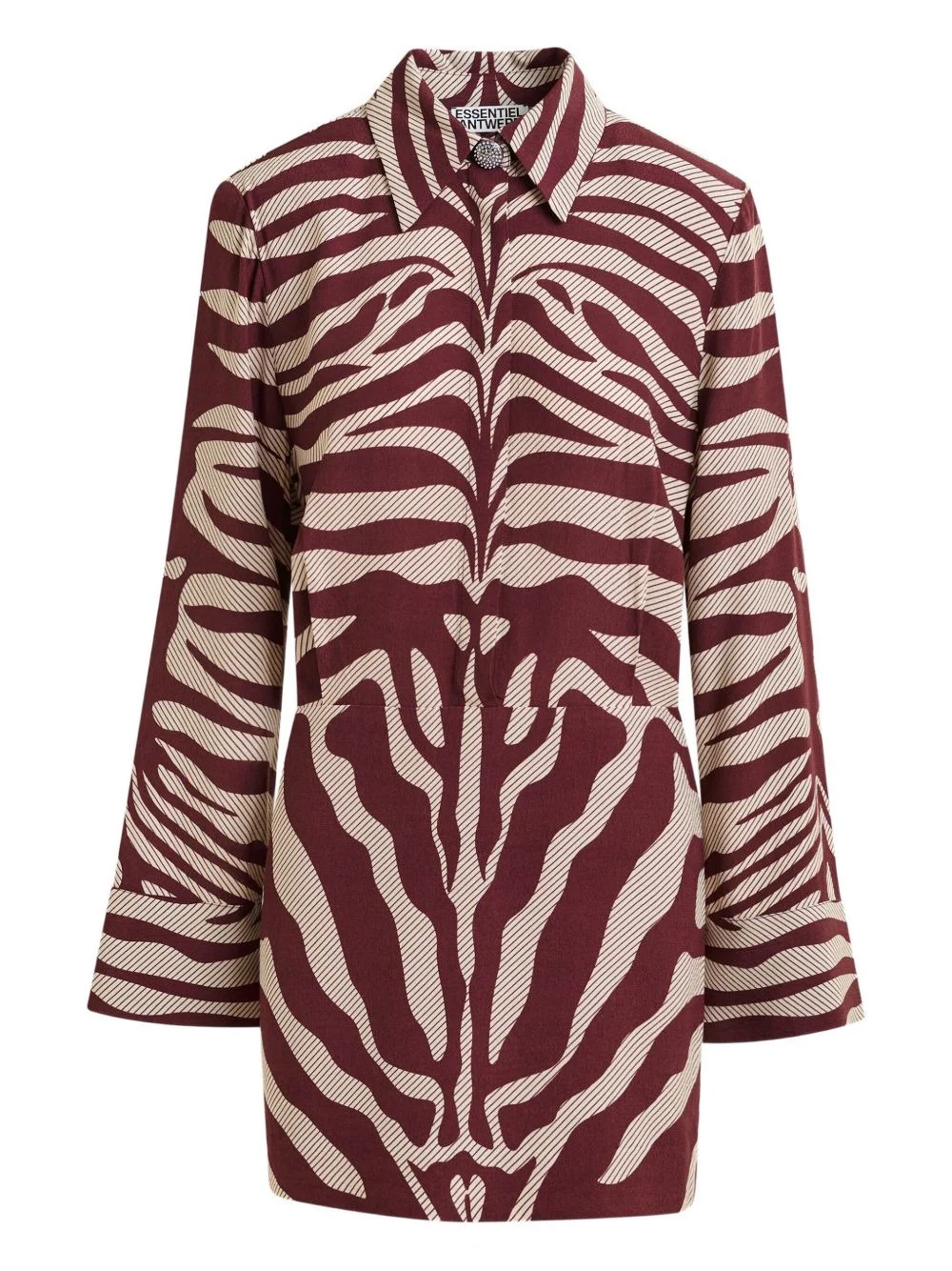 zebra-print padded-shoulder mini dress Highlights - Red/ beige - Zebra print - Concealed placket - Button detail - Padded shoulders Imported Composition Outer: Viscose 53%, EcoVero Viscose (LENZING) 47% Lining: EcoVero Viscose (LENZING) 100% Washing instructions Read Manufacturer Guidelines