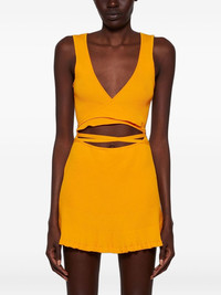 V-neck knit dress Highlights - Orange - Ribbed knit - V-neck - Cut-out detailing - Tie detail at the rear - Ruffled hem Imported Composition Fabric 100% Washing instructions Read Manufacturer Guidelines