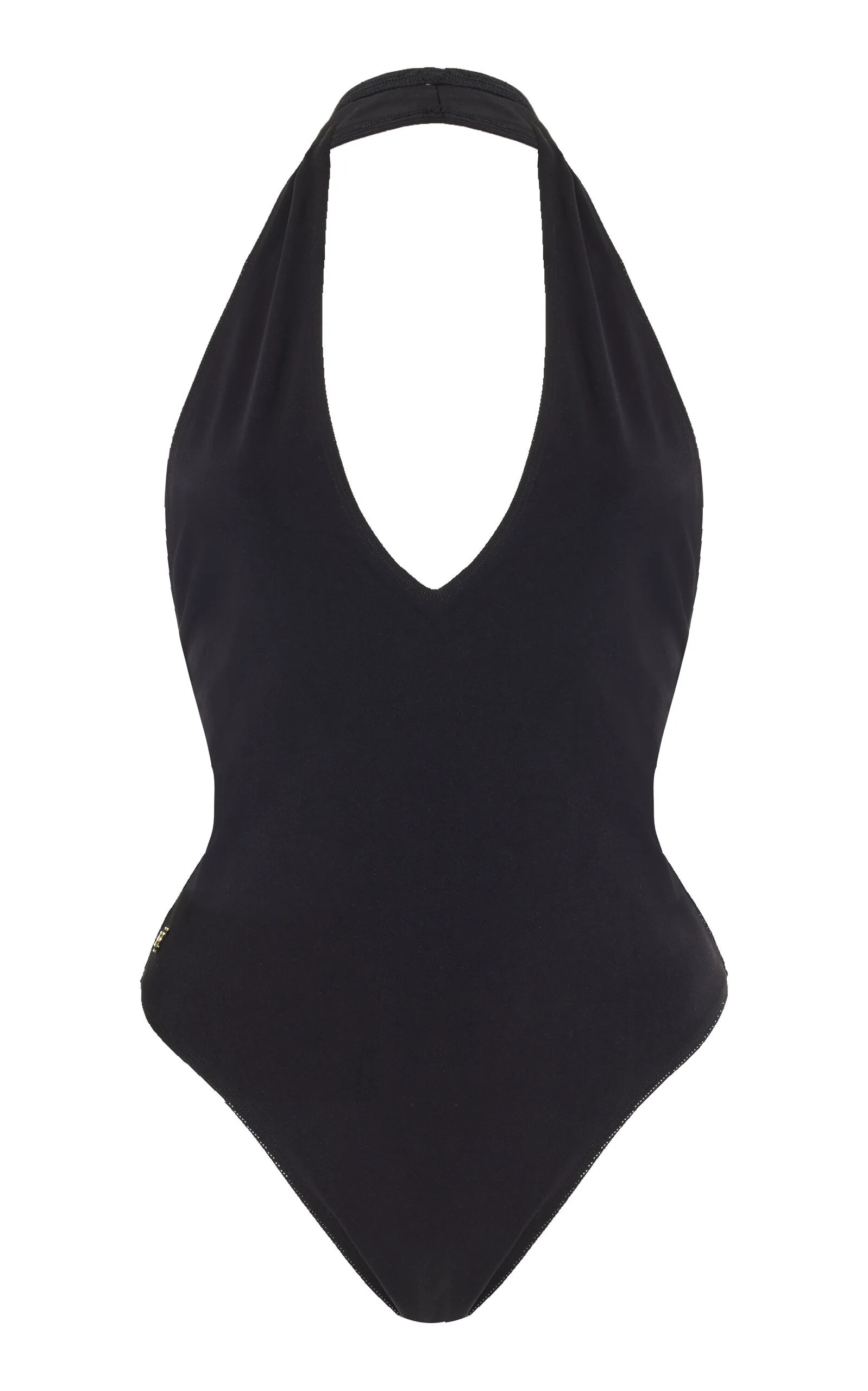 Founded by stylist Chloe Bartoli, Éterne specializes in elevated wardrobe essentials created with exquisite craftsmanship and their brand of muted luxury. The 'Amelia' on-piece swimsuit has a sculpted, skin-baring silhouette with a high-cut leg and a plunging, scooped neckline supported by halter straps. Pair with a pareo and some shades for a day lounging poolside. PRODUCT DETAILS - Slip on - Composition: 80% Nylon 20% Spandex - Hand wash - Imported