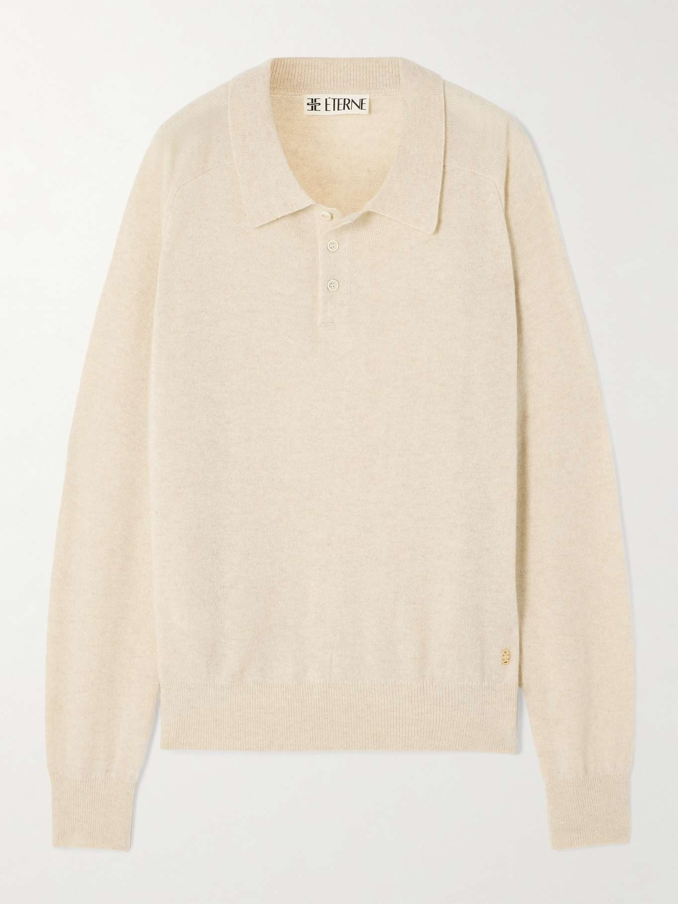 Eterne's sweater is knitted from cashmere, which the label describes as "butter soft". Modeled on polo styles, this 'Brady' style has ribbed trims for extra comfort. Style it with other versatile shades for a classic look. Size & Fit - Fits true to size, however those who are between sizes should take the smaller size - Designed for a relaxed fit - Lightweight knit - Model is 177cm/ 5'10" and is wearing a size XS/S Model measurements: - Bust: 81cm/ 32" - Waist: 68cm/ 27" - Hip: 94cm/ 37" Details & Care - Beige cashmere - Slips on - 100% cashmere - Dry clean - Designer color: Oatmeal