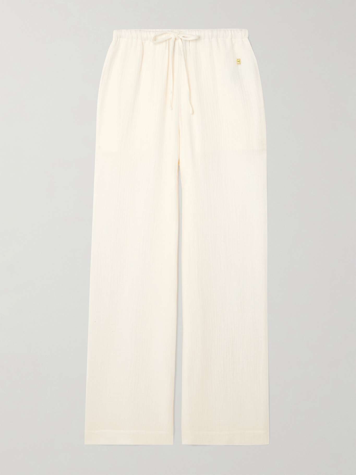 Brody embellished cotton-gauze straight-leg pants Ivory