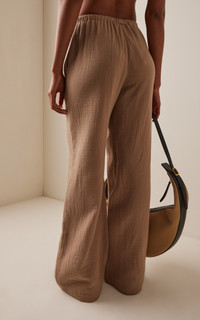 Founded by stylist Chloe Bartoli, Eterne specializes in elevated wardrobe essentials created with exquisite craftsmanship and their brand of muted luxury. The 'Brody' pant is crafted from silicone-washed cotton gauze that's lightweight, breathable. It offers a relaxed fit and a classic feel—designed to be your summer staple. Wear it over a swimsuit with the matching shirt. PRODUCT DETAILS - Pre-Fall '25 - Pull on - Composition: 100% cotton - Dry clean - Made in the USA SIZE & FIT - Designed for a relaxed fit