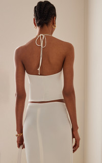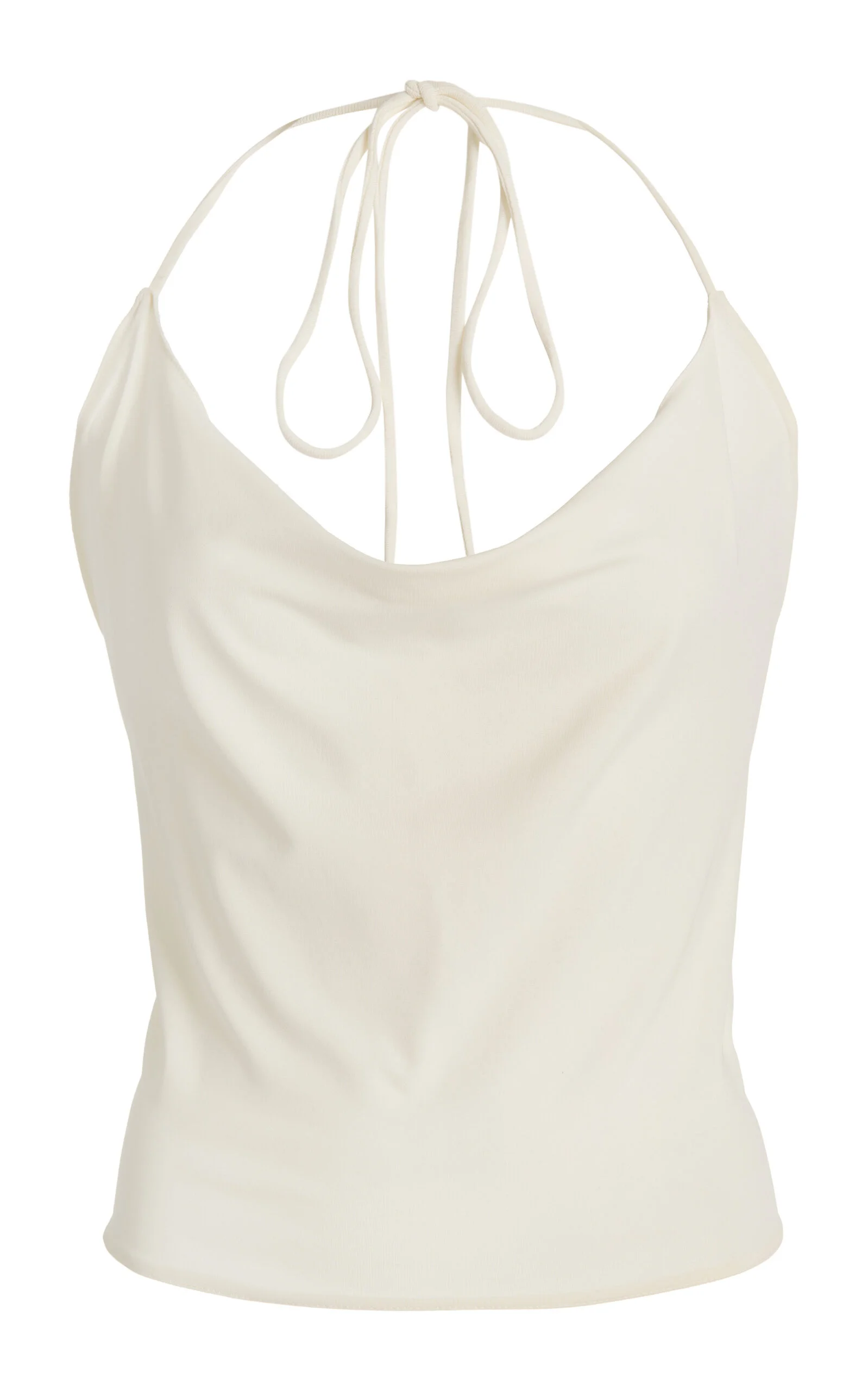 Founded by stylist Chloe Bartoli, Éterne specializes in elevated wardrobe essentials created with exquisite craftsmanship and their brand of muted luxury. The perfect day-to-night essential, the 'Chloé' top is cut from an ultra-soft, thin Italian matte stretch jersey with an effortless drape. Wear it with the matching skirt. PRODUCT DETAILS - Tie fastening - Composition: 76% viscose, 19% nylon, 5% elastane - Designer color: Cream - Dry clean - Imported SIZE & FIT - Our model is 178cm/ 5'10" and wearing a size Small - Fits true to size, our fit specialist recommends taking your normal size - Designed for a slim fit