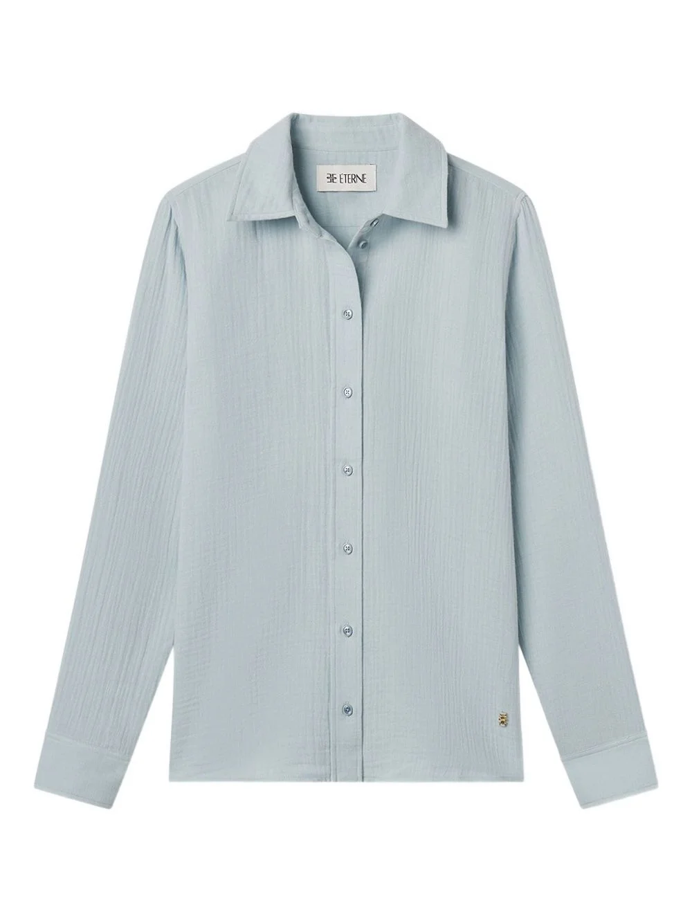button-down cotton shirt Highlights - Dusty blue - Textured cotton - Long sleeves - Button fastening - Collared neckline - Straight hemline Imported Composition Cotton 100% Washing instructions Machine Wash