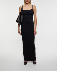 Emma Skirt from Eterne. An elegant, ribbed skirt made from a soft cotton and modal blend. Designed with a slim fit and maxi length – a perfect staple for any capsule wardrobe. Size and Fit - Fits true to size, choose your usual size - The model is 175 cm tall and is wearing size S Specification - Article number - ID: 176614-000 - Brand: Eterne - Color: Black - Washing Instructions: Machine wash cold - Made of: 48% Cotton, 48% Modal, 4% Spandex